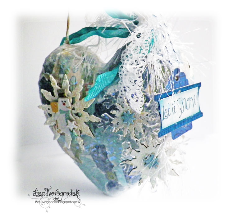 I decoupaged a paper mache heart with the Elf Magic Mischief papers.